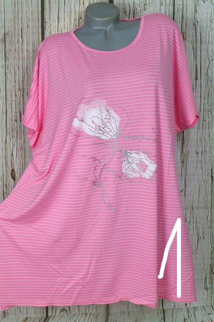 Csíkos- virágos moletti felső,tunika ( mellb 134 cm) - 4 szín 02.02