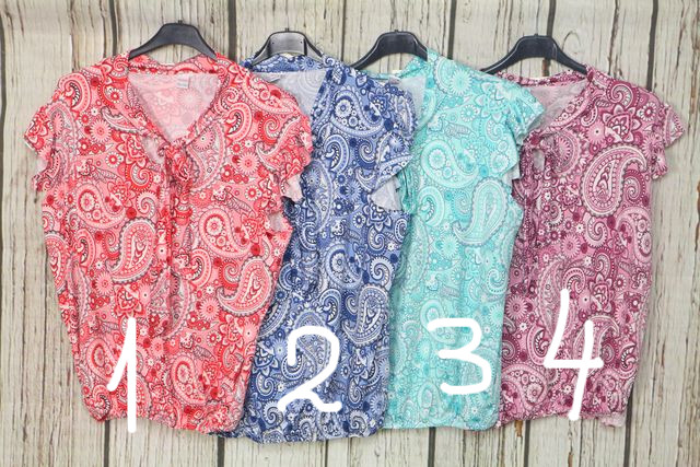 Csinos fodros ujjú mintás felső,elöl megkötős ,gumisderekú lenge felső S/M, L/XL és 2XL/3XL 06.24