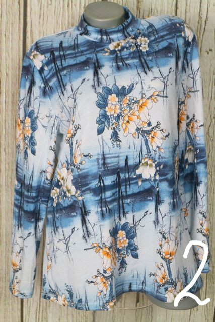 1--Magasított nyakú virágos mintás felső L, XL, 2XL, 3XL,4XL