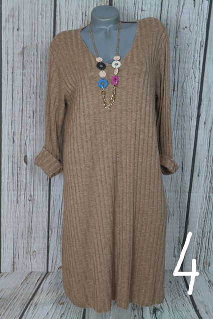 • Nagyon csinos bordázott anyagú vékonykötésű ruha + nyaklánc - 5 színben