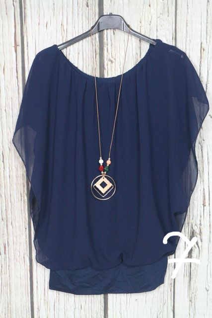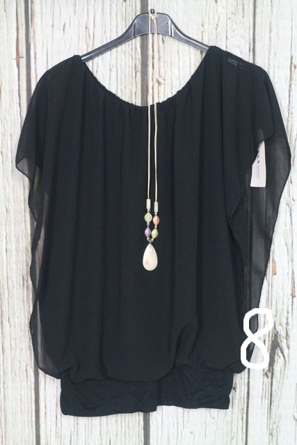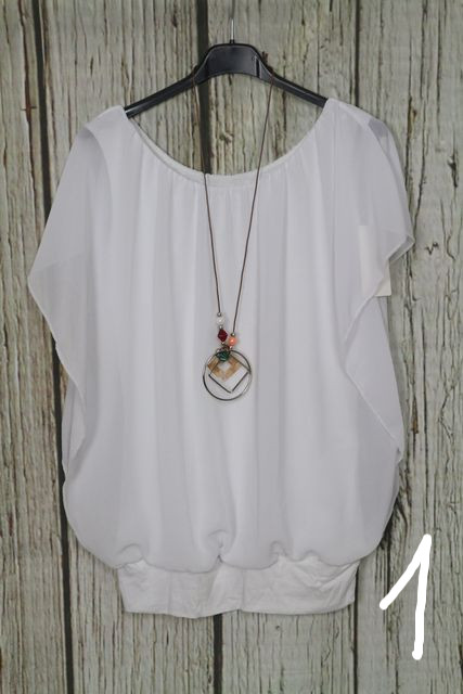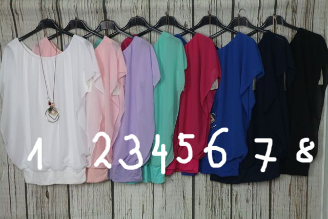 • Nagyon csinos dupla hatású -muszlin felső + nyaklánc  - 8 színben