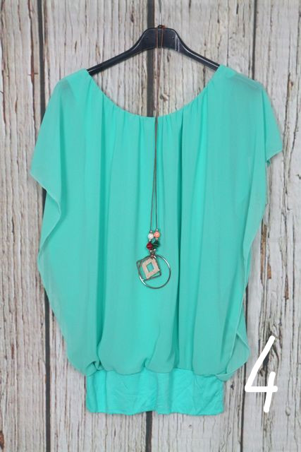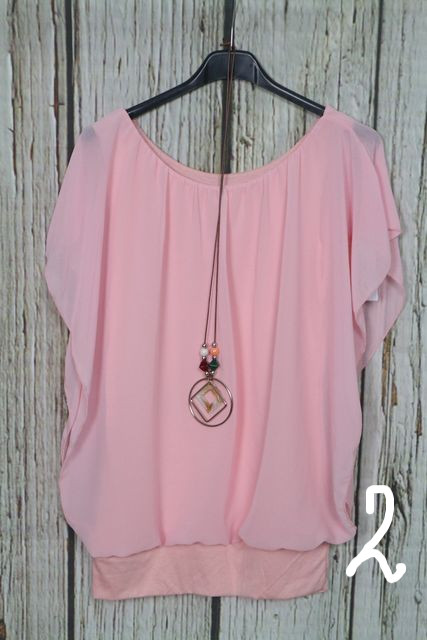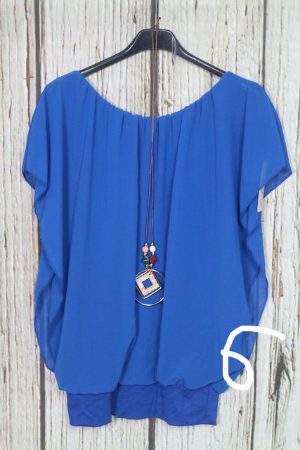 Nagyon csinos dupla hatású -muszlin felső + nyaklánc - 8 színben 06.17