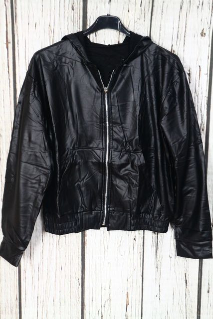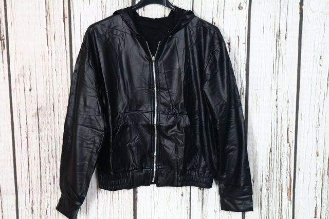 Nagyon szuper bőrhatású cipzáros-kapucnis felső,kabátka belseje bolyhos M/L , XL/XXL