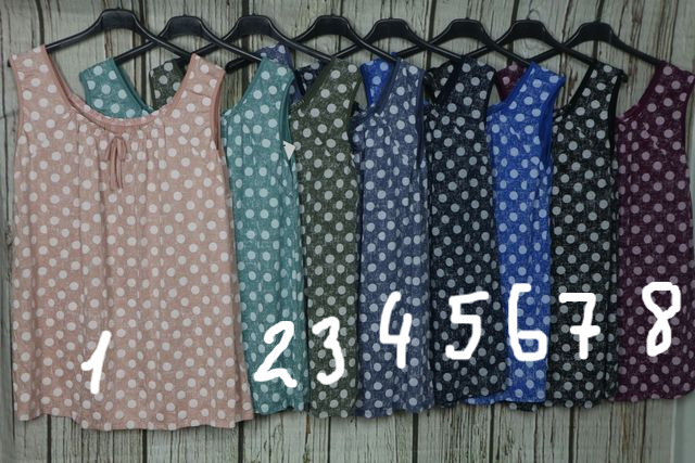 -Pöttyös ujjatlan felső - mellb 130 cm- 8 színben
