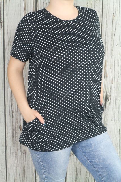 Pöttyös zsebes tunika XL, 2XL, 3XL,4XL,5XL,6XL -fekete alapon