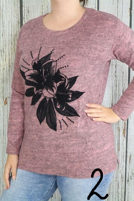 • Puha-meleg anyagú virágos felső - 6 színben