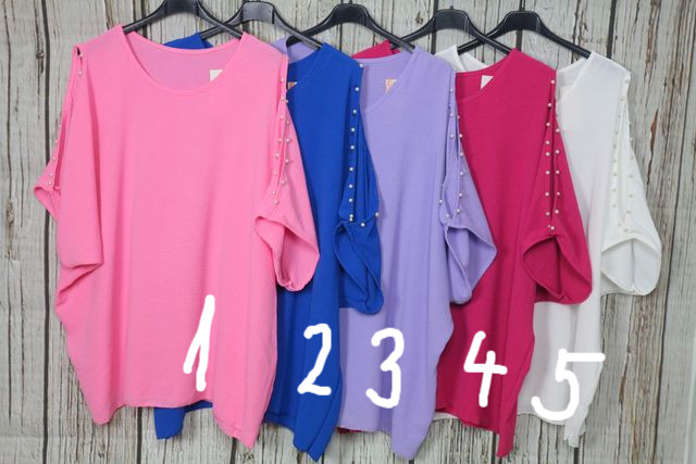 • Színes lenge vállvillantós felső,ujján gyöngyös díszítéssel