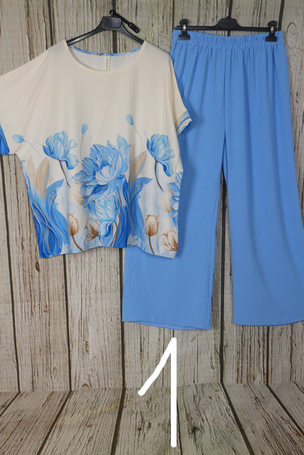 Színes virágos lenge felső + nadrág - szett 03.30.