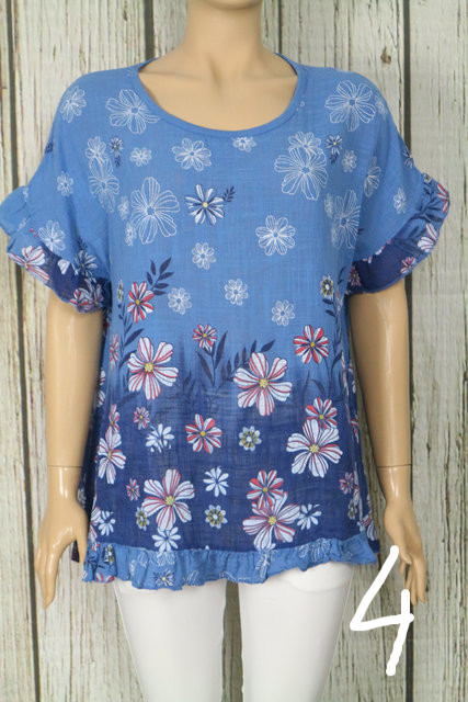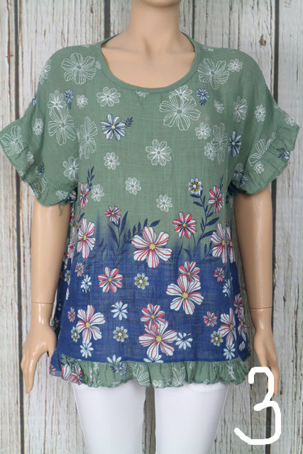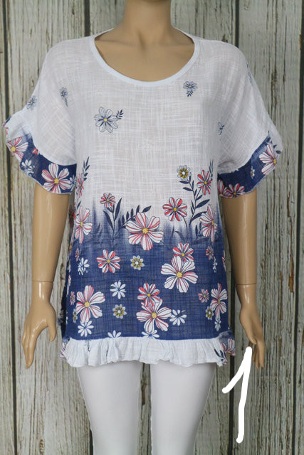 • Virágos fodros lenge pamut felső