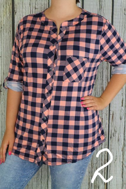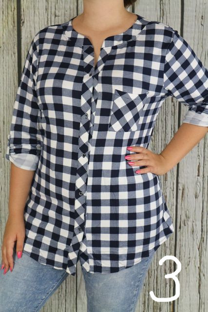 Elöl végig gombos csinos hosszított kockás felső -- XL, 2XL