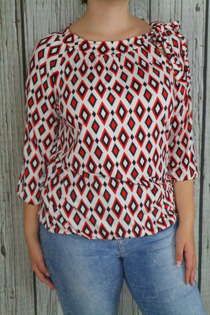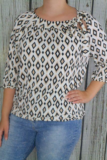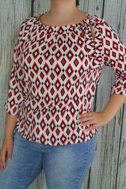 Csinos mintás lezser felső,nyakánál megkötős díszítéssel XL, 2XL ,3XL ,4XL 10.25