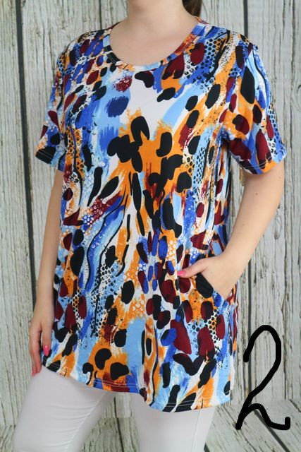 Színes mintás zsebes tunika XL, 2XL, 3XL,4XL,5XL,6XL 02.06