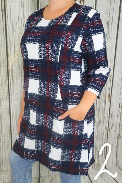 Csinos kockás zsebes tunika M, L,xL, 2XL, 3XL,4XL - 3 színben