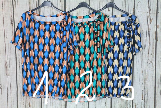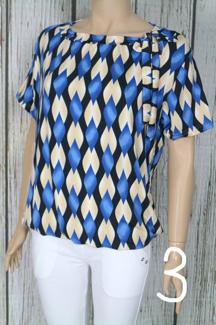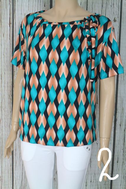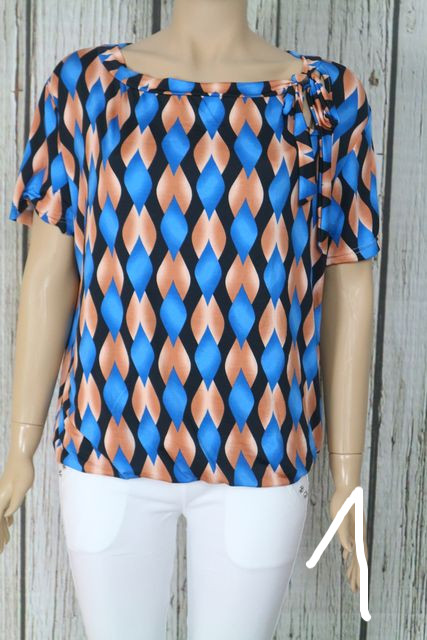 Csinos mintás lezser felső,nyakánál megkötős díszítéssel M, L, XL, 2XL 05.06