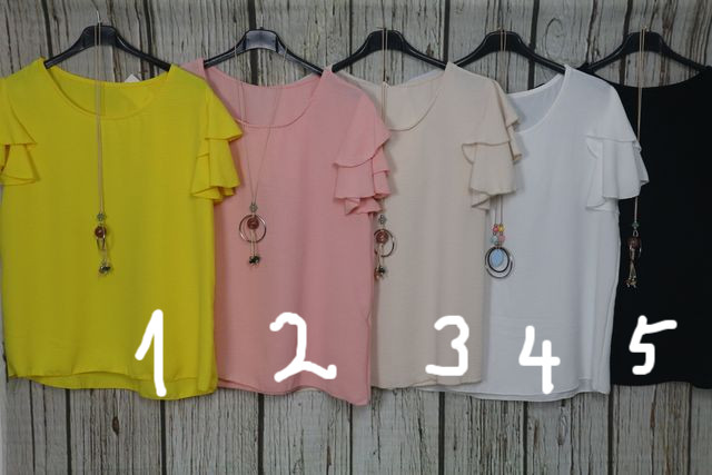 Csinos lenge felső + nyaklánc, válla fodros -több színben 06.16