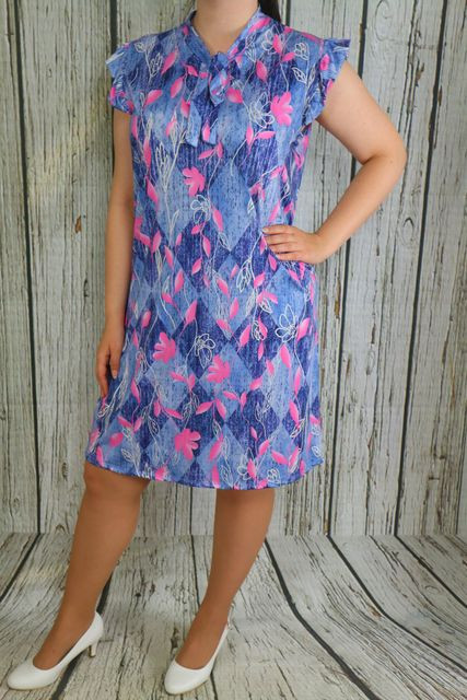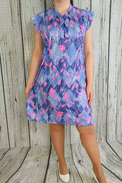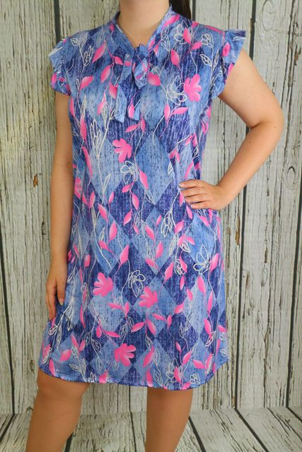 • Vállán fodros A vonalú szépséges mintás ruha,elöl megkötős díszítéssel