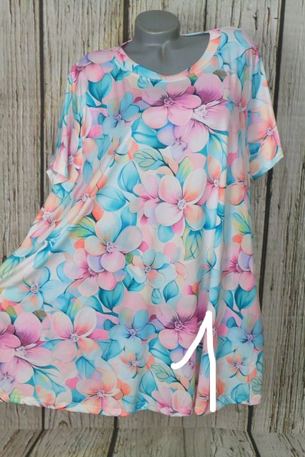 Színes mintás lenge tunika -mellb 130 cm- 4 mintával  07,21