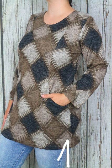 Csinos kockás zsebes tunika M, L, 2XL, 3XL,4XL 08.06