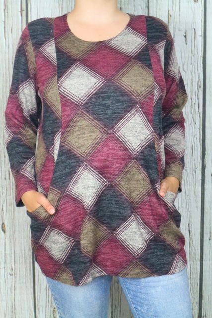 Csinos kockás zsebes tunika M, L, XL, 2XL, 3XL,4XL