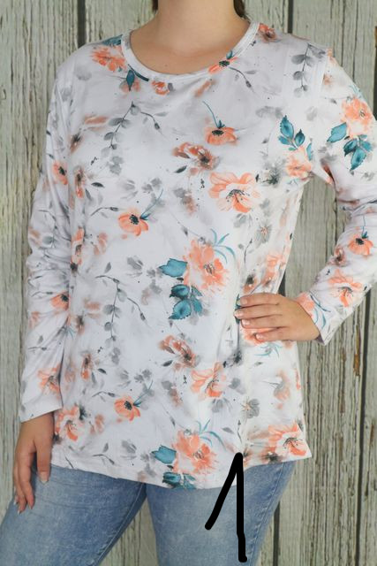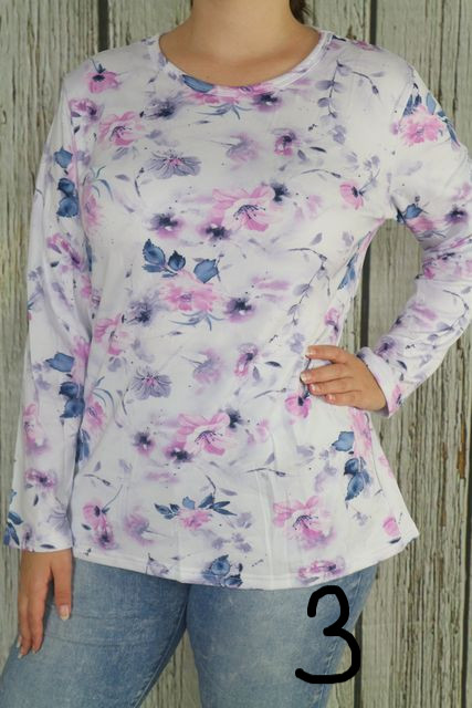 Fehér alapon színes virágos felső,belül bolyhos anyagú L,XL,2XL,3XL,4XL