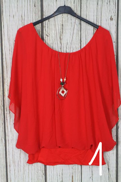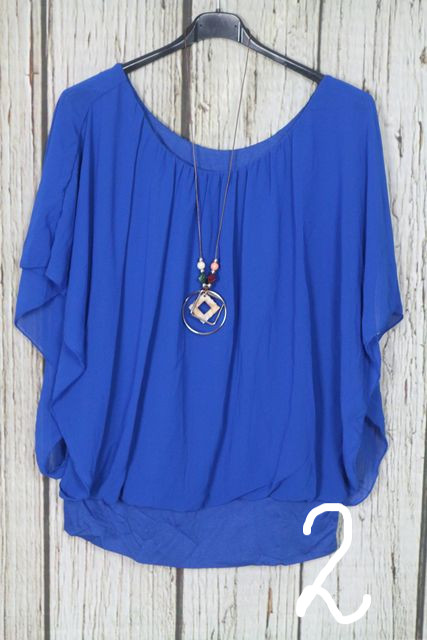 Nagyon csinos dupla hatású -muszlin felső + nyaklánc - 7 színben 02.10