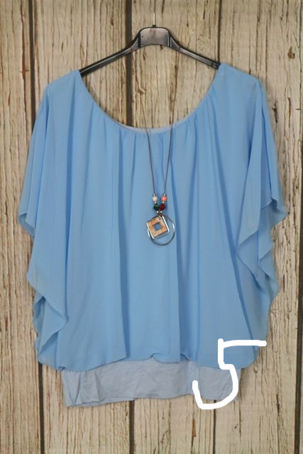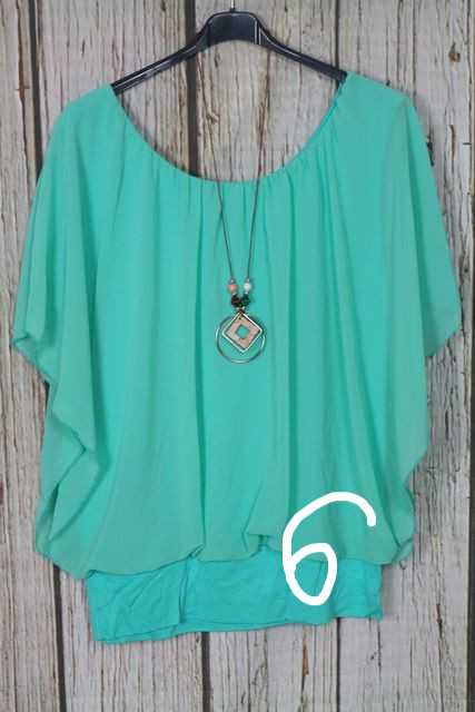 • Nagyon csinos dupla hatású -muszlin felső + nyaklánc - 7 színben