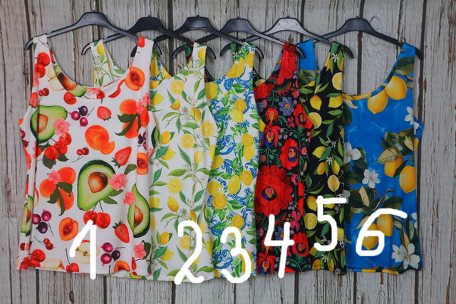 • Gyümölcsös -virágos ujjatlan bordázott felső - több színben