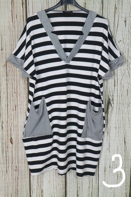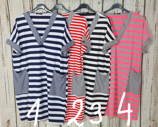 • Nagyon csinos csíkos zsebes ruha L/XL és 2XL/3XL