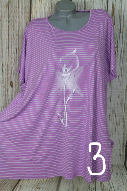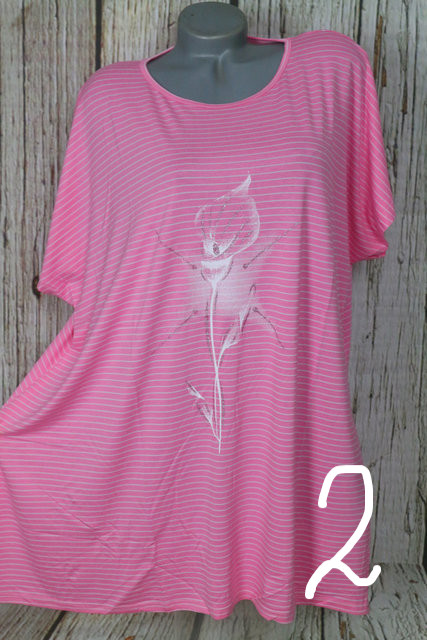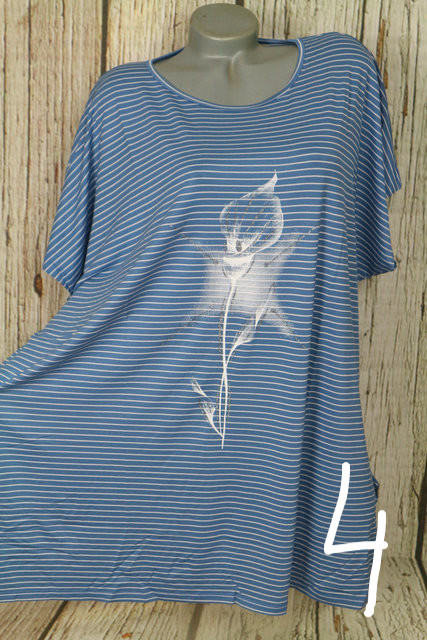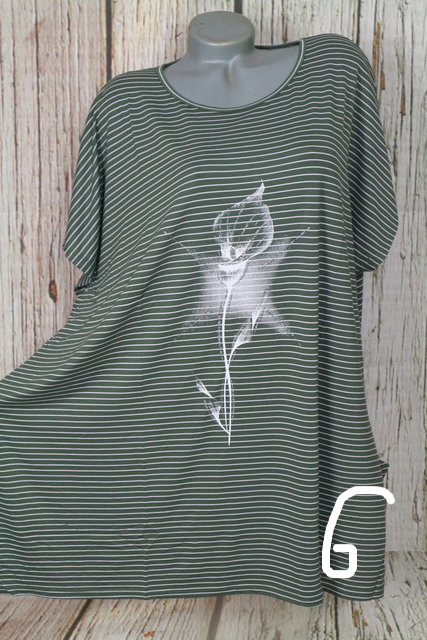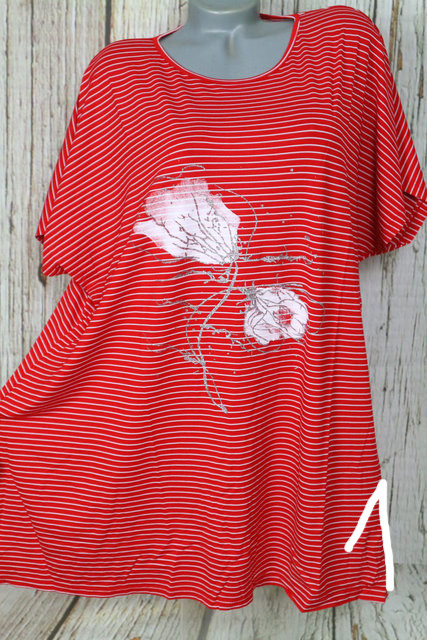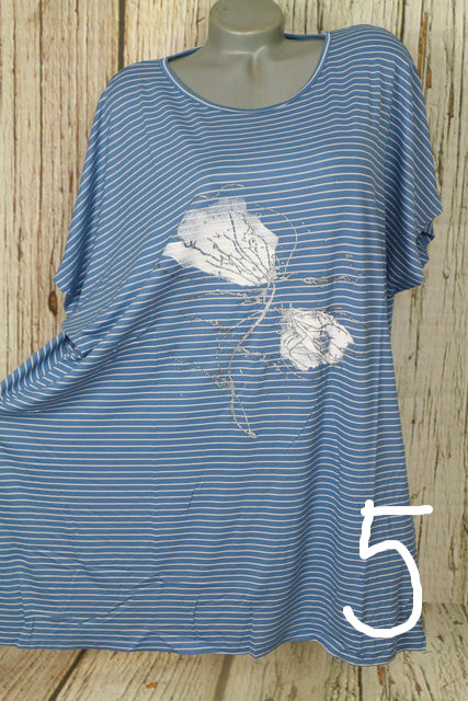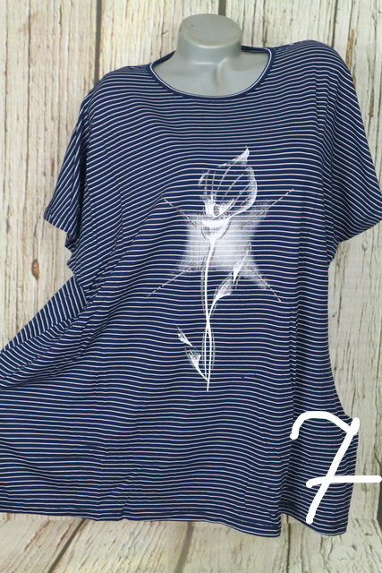 • Csíkos- virágos moletti felső,tunika ( mellb 134 cm)