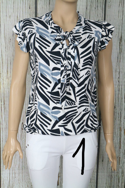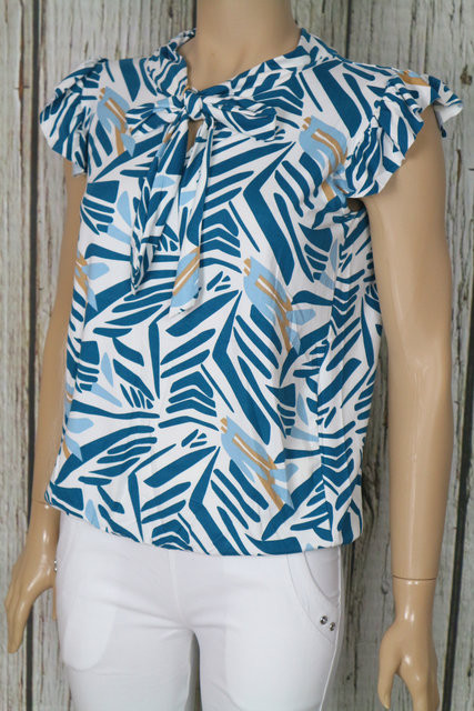 Csinos fodros ujjú mintás felső,elöl megkötős ,gumisderekú lenge felső S/M, L/XL és 2XL/3XL 03.20.