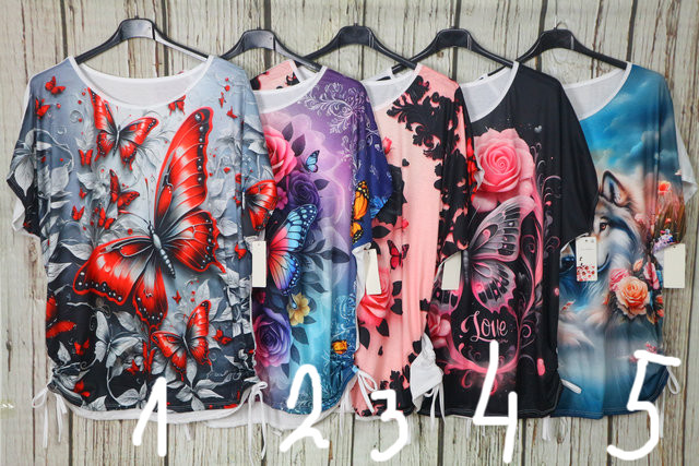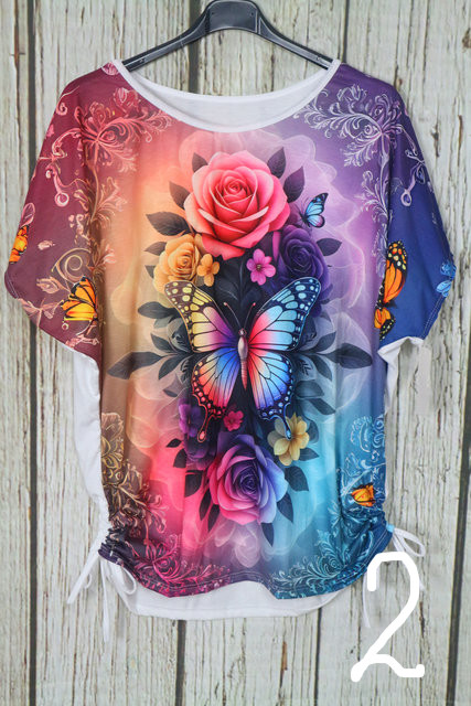 Színes mintás lenge felső -oldalt összehúzható 04.20.